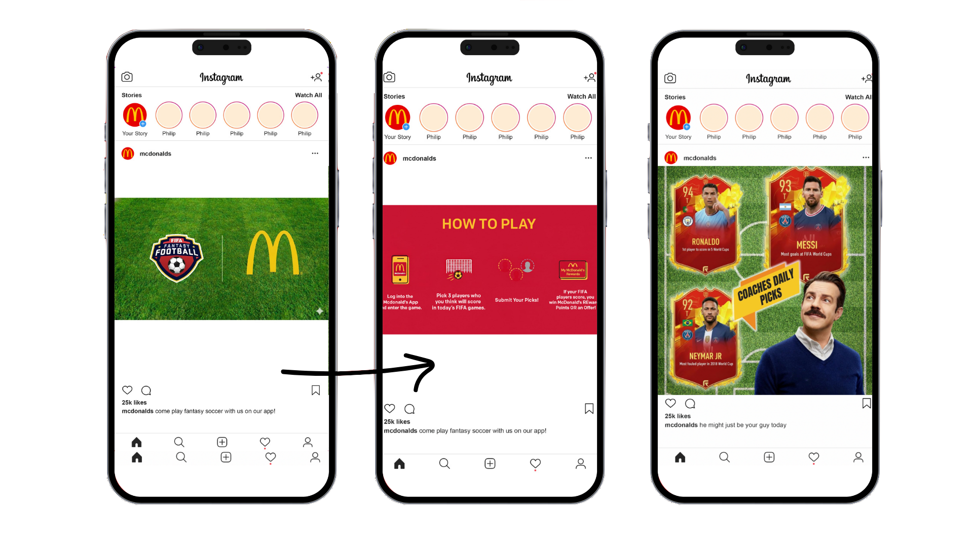 Phase 2: Daily posts where our coach character, Ted Lasso, informs McDonald’s Instagram followers of his top pics of the day.